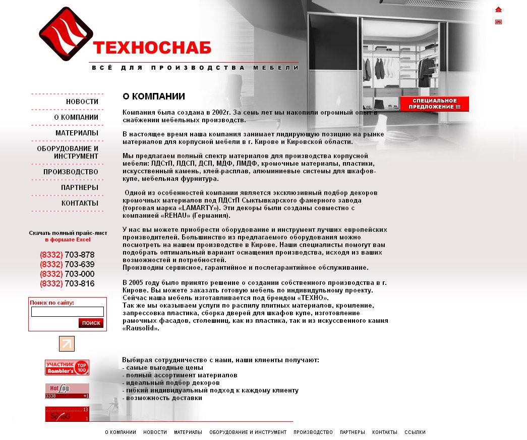 Сайт компании ТехноСнаб. Разработка дизайна - внешняя.